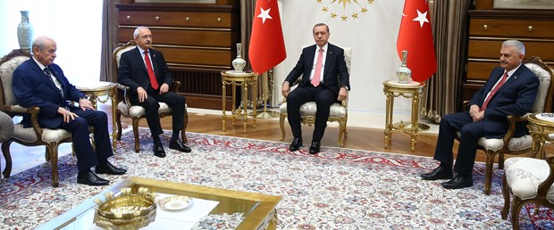 در دو عکس فوق که مربوط به نشست مشترک اردوغان با احزاب ترکیه است، جای خالی رئیس حزب HDP محسوس است